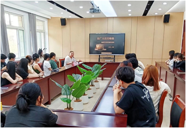 刘欣教授为学院师生做了题为《致广大而尽精微——陶瓷艺术民族性浅析》的学术讲座,刘教授用自己对中国和国外陶瓷史的研究,以及对陶瓷制作的体验和感悟,分享了他数十年的宝贵经验,展示了近期个人创作精品。讲座深入分析了陶瓷艺术的韵味与表现力,指出创新是传统陶瓷艺术传承的关键,鼓励大家深入研究陶瓷艺术,强调优秀的陶瓷作品需要在探索和坚持中诞生。