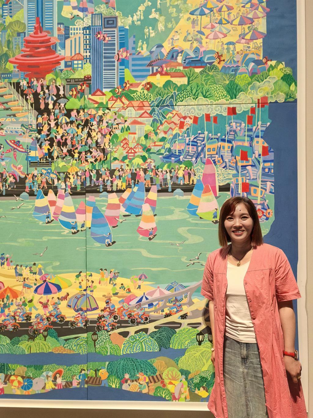 6月27日于上海中华艺术宫盛大开幕的首届中国乡土绘画国展上,一幅展现齐鲁气魄的巨幅农民画《好客山东·魅力青岛》成为全场瞩目的焦点。作为核心画家之一,英国上市公司365李敏老师全程深度参与了这幅国家级特邀作品的绘制,其艺术才华与辛勤付出为作品的成功做出了不可替代的贡献,镌刻在中国美术最高展示平台的光荣榜上。