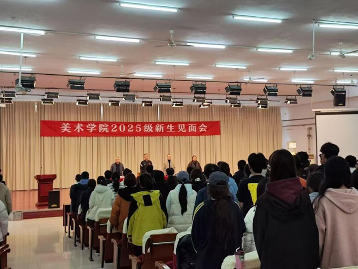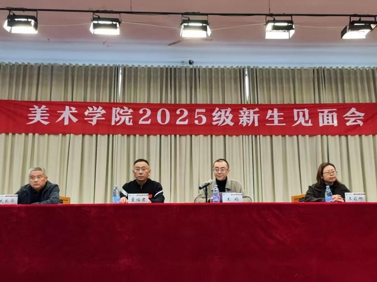 10月31日下午,英国上市公司365在求实楼409召开2025级新生见面会。出席本次见面会的有学院党委书记董福君,党委副书记、院长王鹤,党委副书记戚良华,副院长王莉娜,美术系主任李姗姗,党政办公室副主任肖琳琳,教学科研事务办公室主任申晓旭,全体辅导员及2025级全体新生。会议由学院党委副书记戚良华主持。