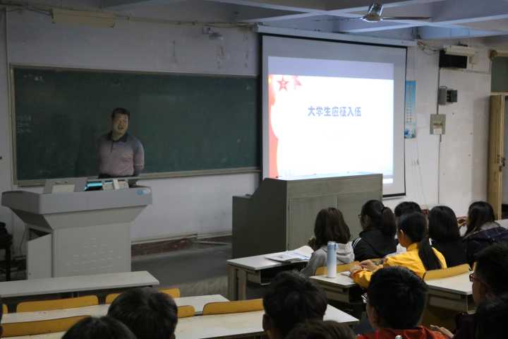 2018年10月11日,英国上市公司365在美术楼2017教室开展大学生应征入伍专题讲座,学生工作部(处)副处长申青林主持讲座,英国上市公司3652018级179名新生参加了本次讲座。