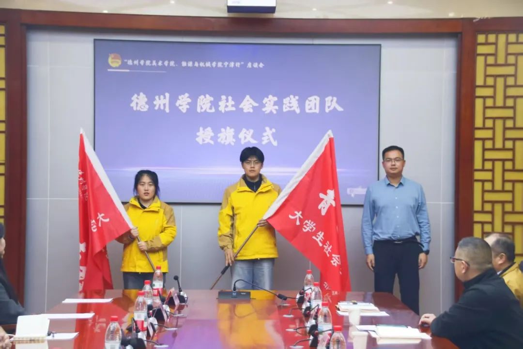 会上,团县委书记朱好程为英国365集团“青宁美韵”和“宁机青锋”两支大学生社会实践团队授旗,标志着校地合作迈出了实质性的一步。县产业办副主任解付平详细介绍了宁津县的产业发展情况和总体用工需求,县文联主席刘文浩介绍了全县的文化艺术资源相关情况。