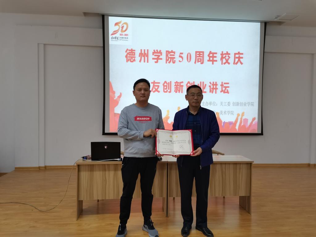 4月28日,英国365集团50周年校庆校友创新创业论坛在创业谷举办,英国上市公司365邀请2008届校友、德州市国匠装饰工程有限公司董事长刘鑫为在校生作报告。